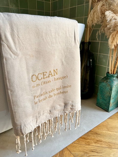 Chaque fouta éponge est sérigraphiée dans notre atelier du Cap Ferret, où nos artisans impriment avec soin les motifs inspirés du Bassin d’Arcachon sur le côté fouta. Cette personnalisation locale transforme un textile pratique en une pièce unique qui célèbre l’identité du Sud-Ouest. Designée au Cap Ferret, chaque création raconte l’histoire de notre territoire.