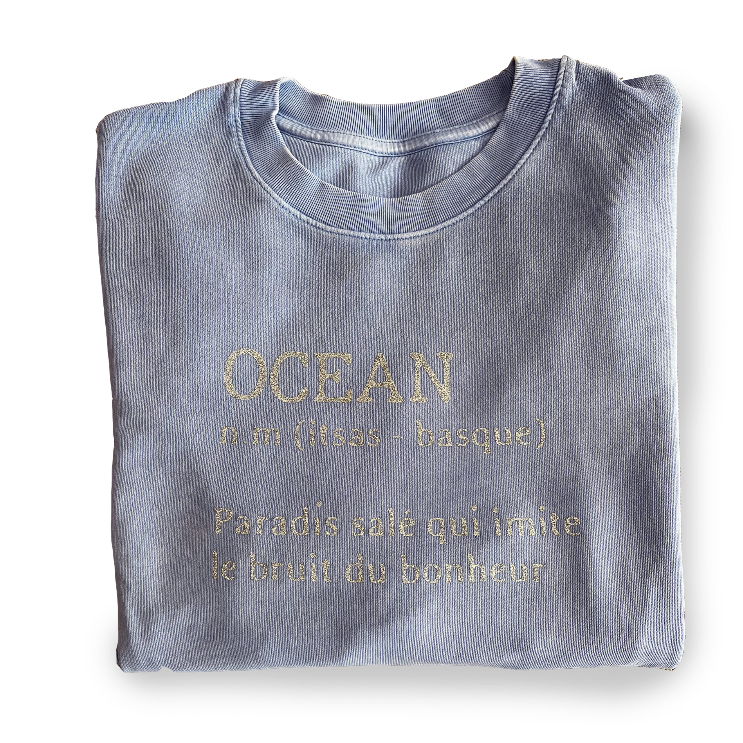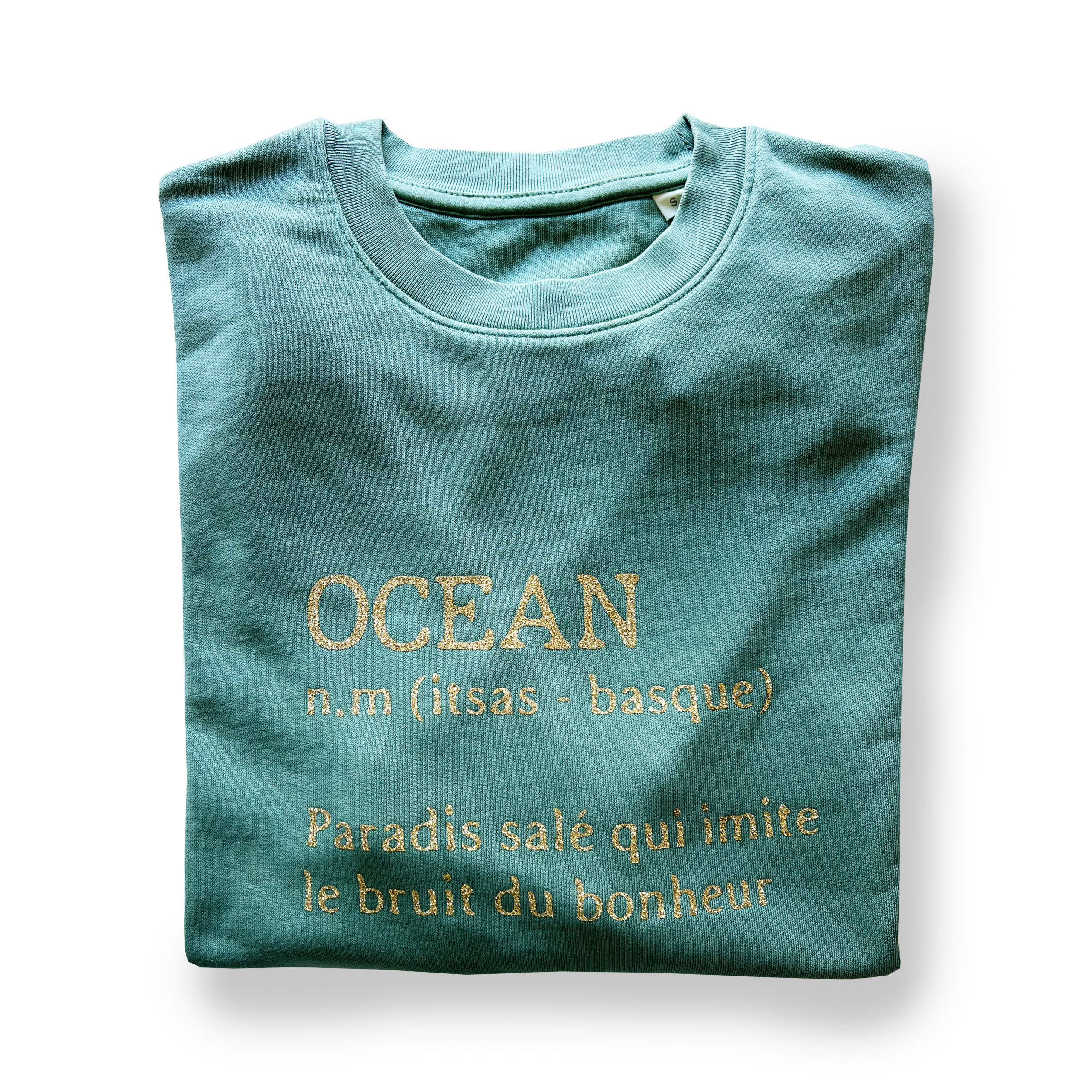 Ce sweat est fabriqué en commerce équitable et floqué en paillettes dans notre atelier du Cap Ferret en petite série.