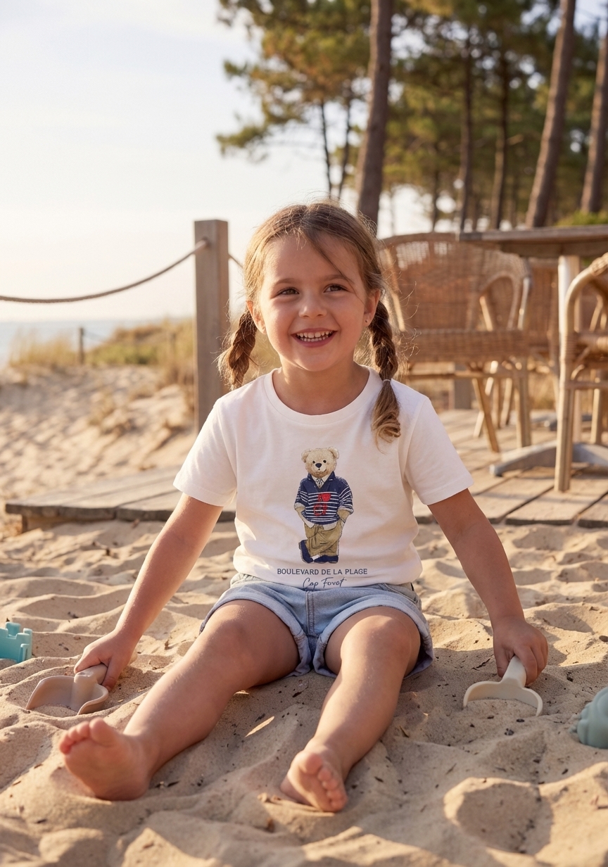 Chaque pièce est designée au Cap Ferret par Tiffany, la créatrice inspirée par le Bassin, puis imprimée au Cap Ferret dans notre atelier local. Cette démarche 100% locale garantit une qualité irréprochable et un impact environnemental minimal. Notre coton bio certifié offre une douceur exceptionnelle et respecte votre peau comme la planète.